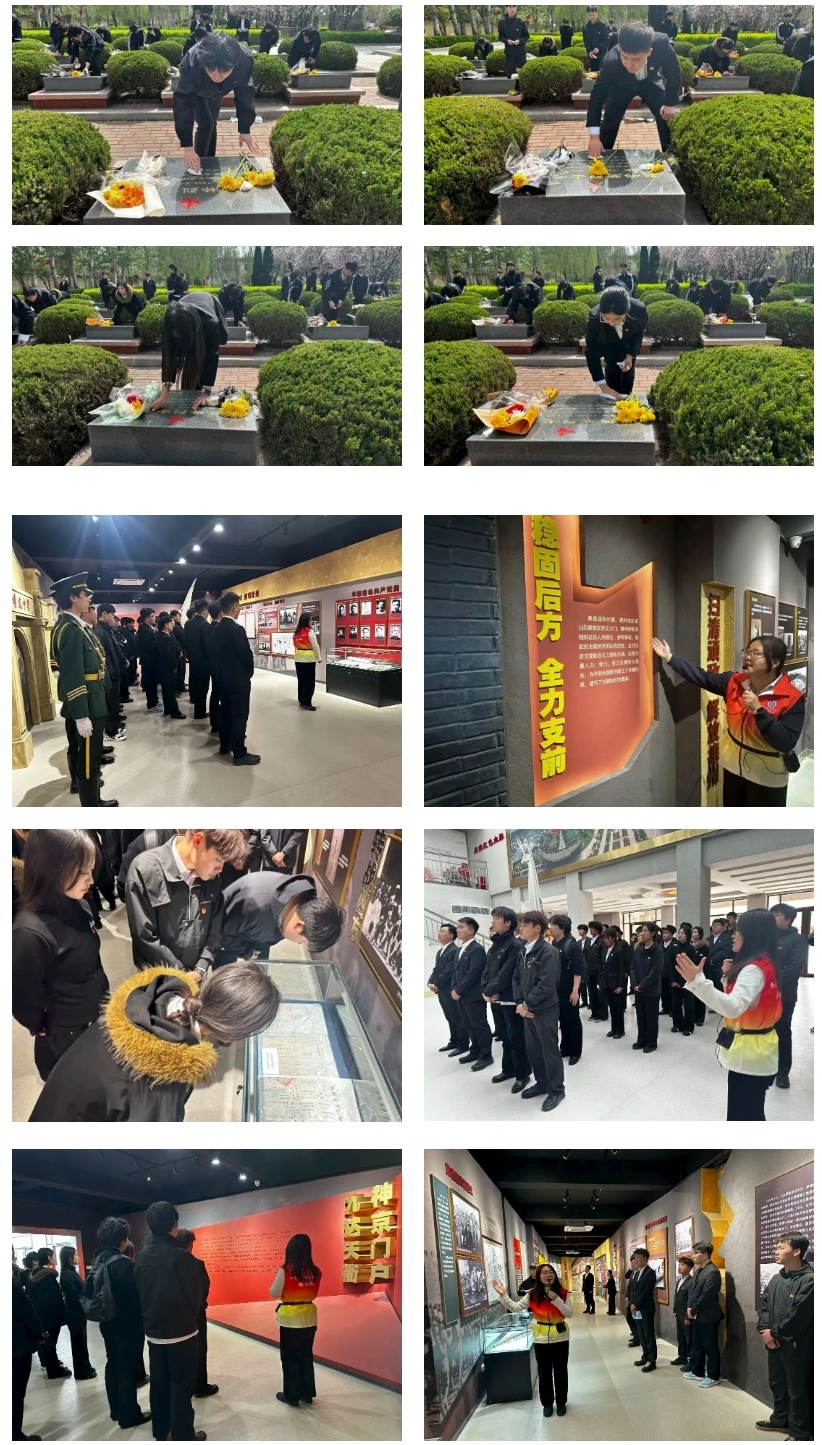 默哀结束后,青年学子手持工具,有序开展墓碑擦拭活动,仔细拂去碑上尘埃,在躬身实践中感悟英烈精神的厚重。之后,在学校红色筑梦社团志愿者引导下,大家参观了烈士纪念馆,通过聆听英烈事迹、观看历史图片与文物史料,重温革命先辈的峥嵘岁月,深刻感悟其坚守信仰、无私奉献的崇高精神,从红色历史中汲取奋进力量。