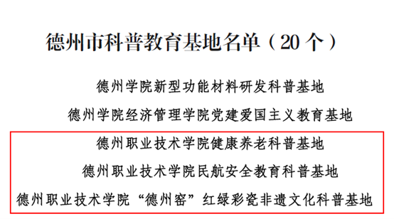 近日,德州市科学技术协会开展了德州市科普教育基地、德州市科普专家工作室增补认定工作,分别认定德州市科普教育基地和德州市科普专家工作室各20个,其中,我校在两个项目中各新增3个。